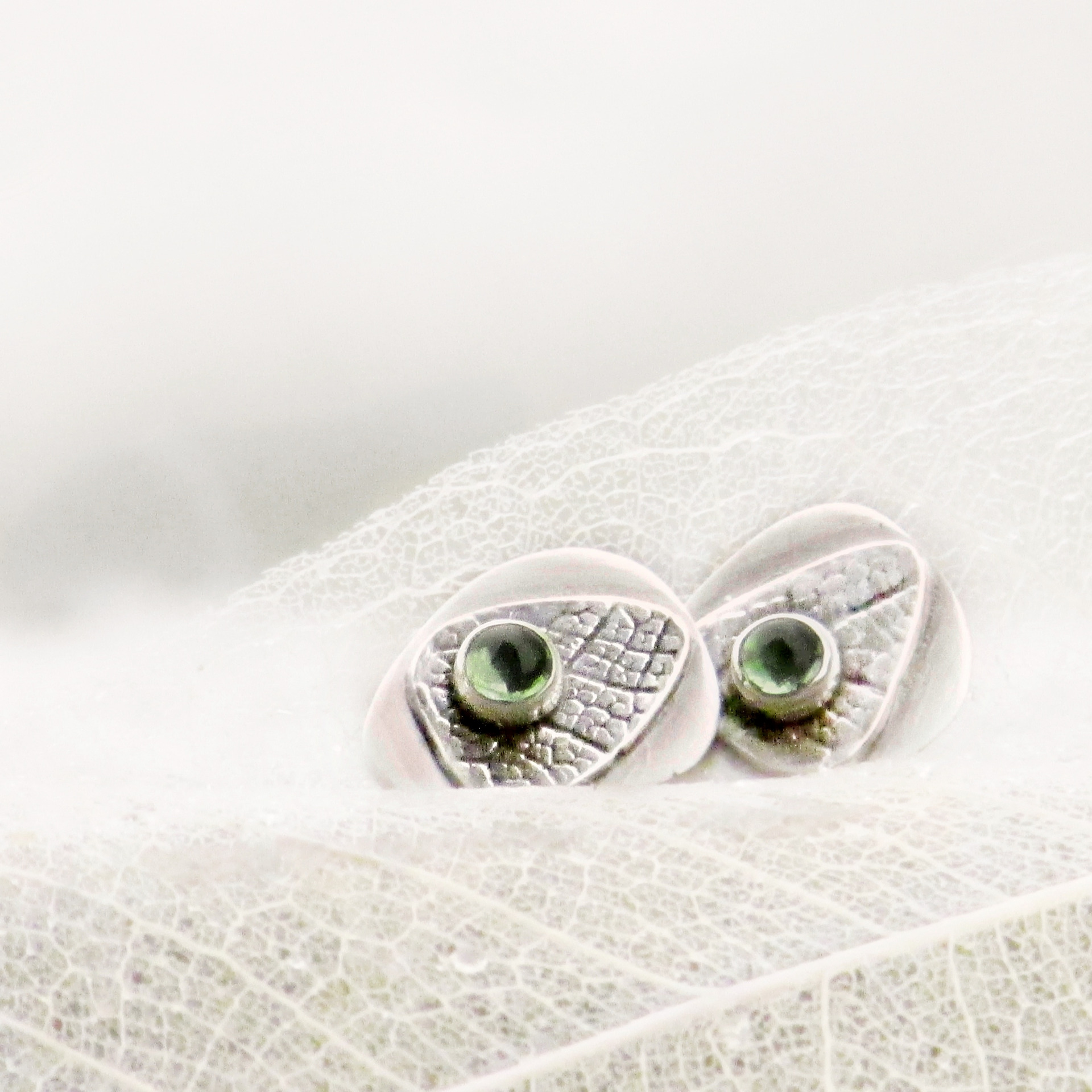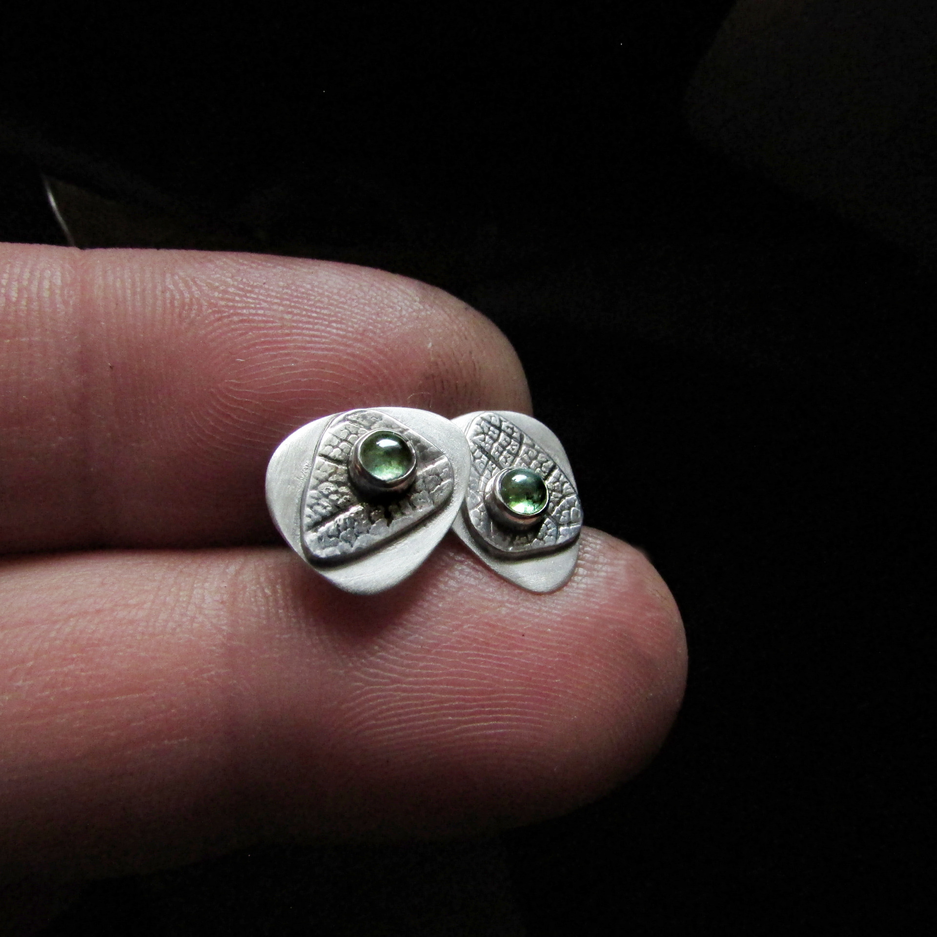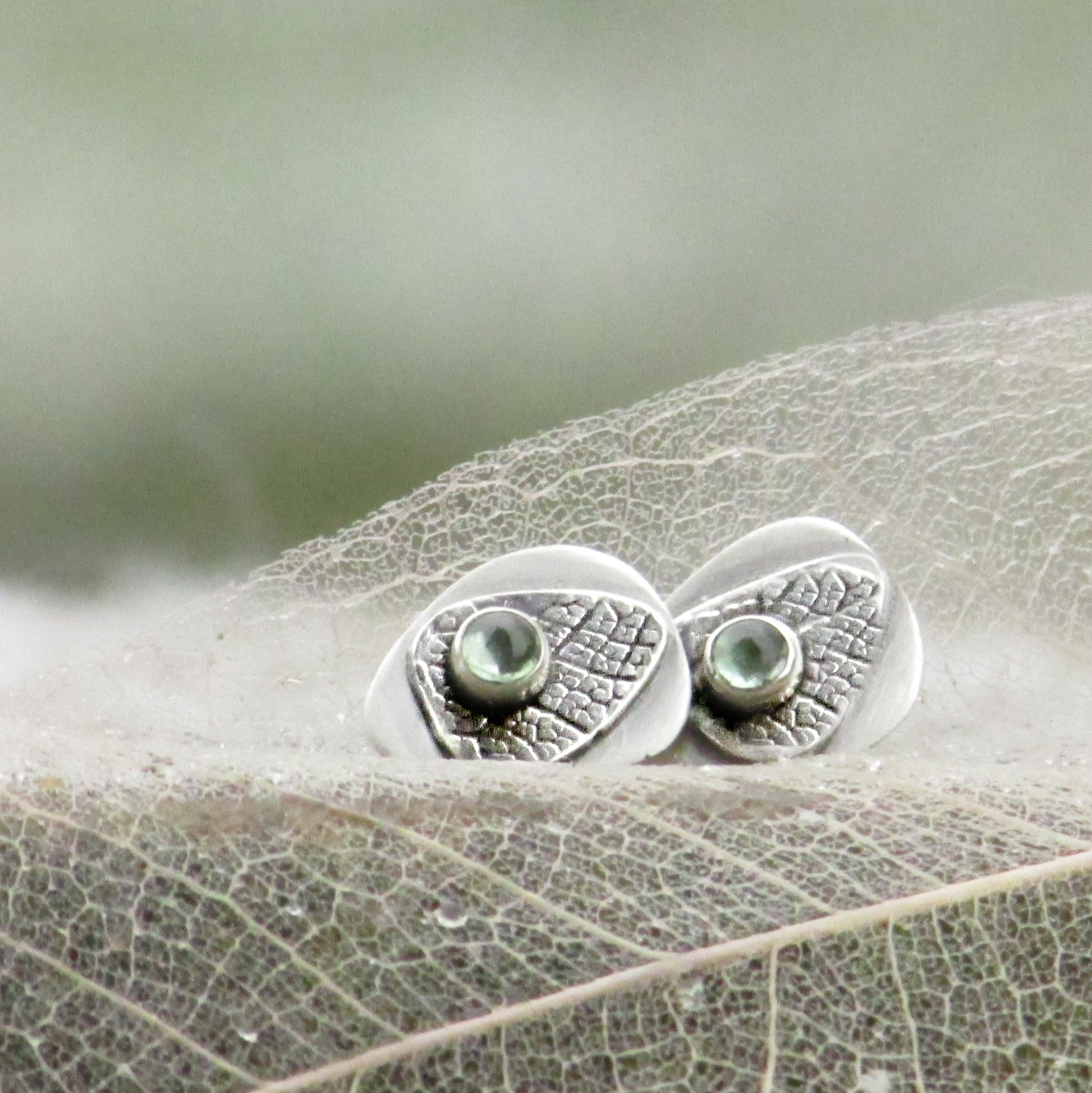 PROVEDENÍ: Náušnice jsou RUČNĚ VYROBENÉ klasickou zlatnickou technikoku. Zajištěny jsou velmi spolehlivým šroubovacím balonkem. Spodní plátek listu má hedvábně matný povrch, na něm je lístek se strukturou listové žilkoviny a poslední vrstvou je lůžko s kamenem. Struktura listu je plastická, podtrhuje ji jemná patina. Tvar náušnice i vsazení kamenů je asymetrické.