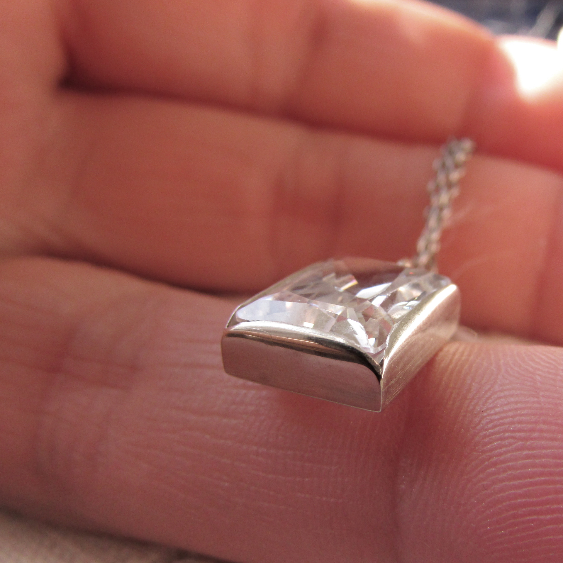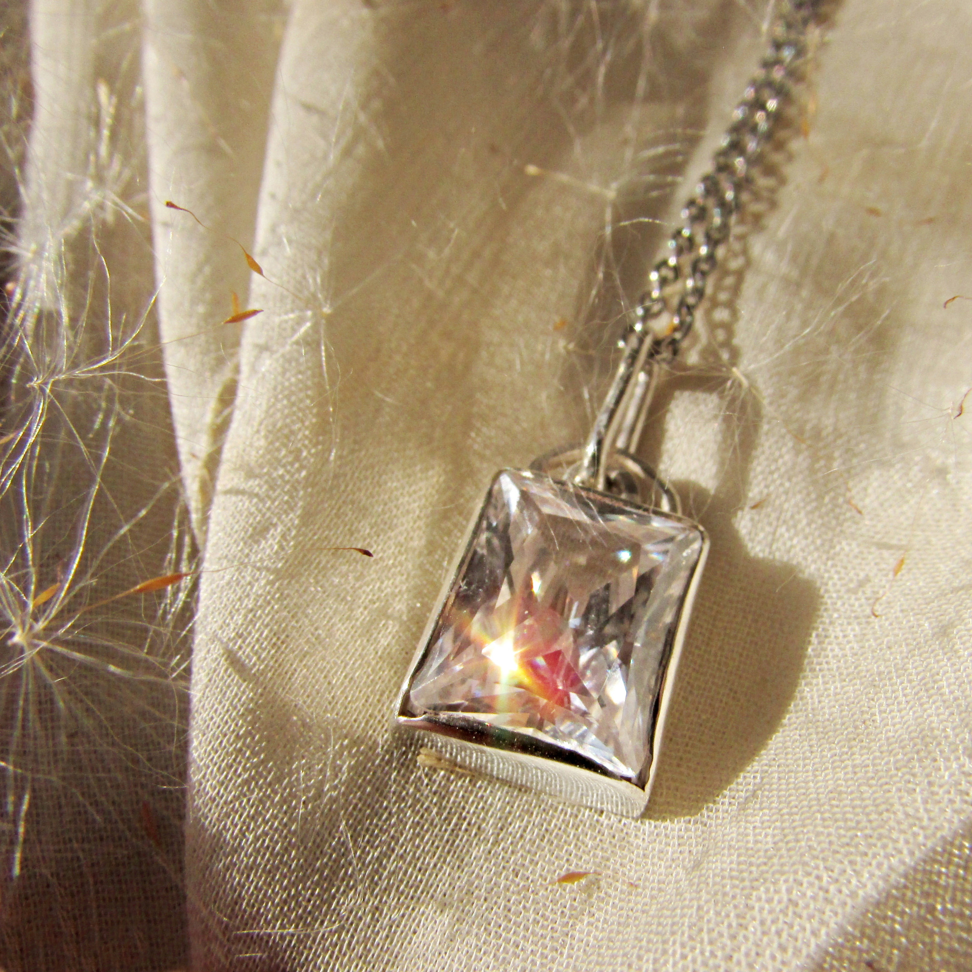 Stříbrný ručně vyrobený elegantní přívěsek ryzosti 925/1000, dominuje mu nádherný broušený zirkon.