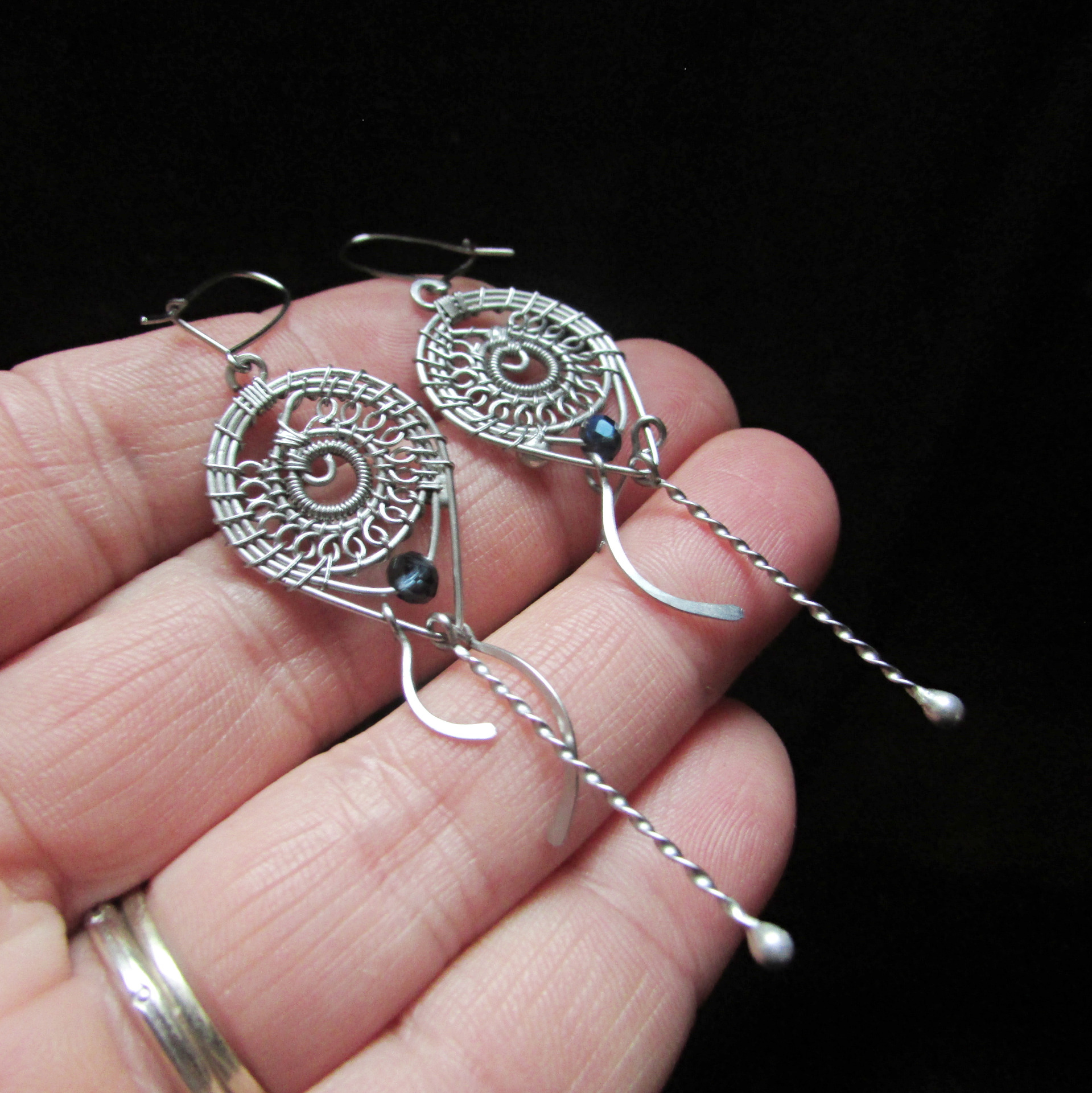 Autorské bohaté romantické náušnice, velmi jemný filigránový motiv. Přesto však nepřehlédnutelné dlouhé