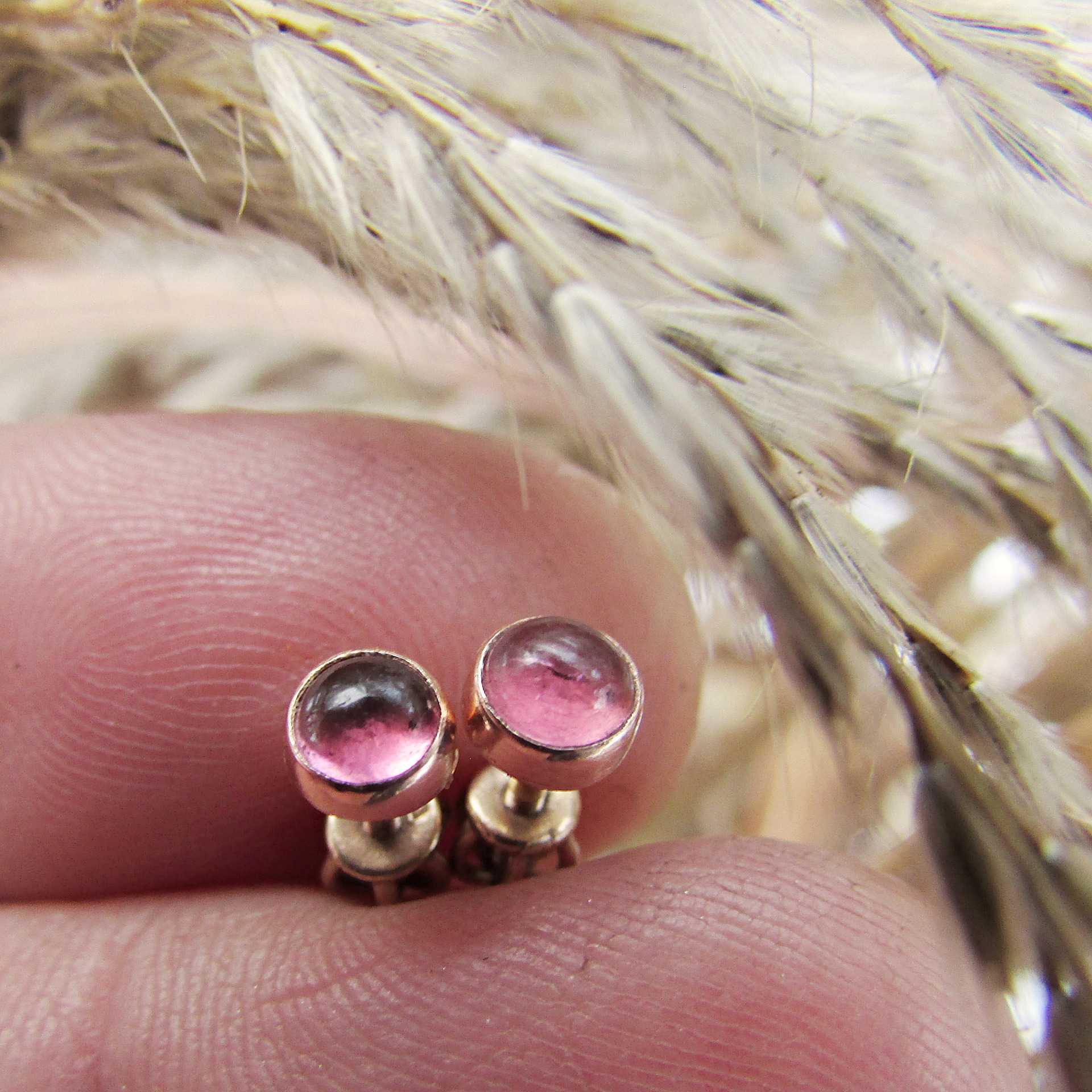 mm), ručně broušené v ČR. Kameny jsou v sytém starorůžovém odstínu,
