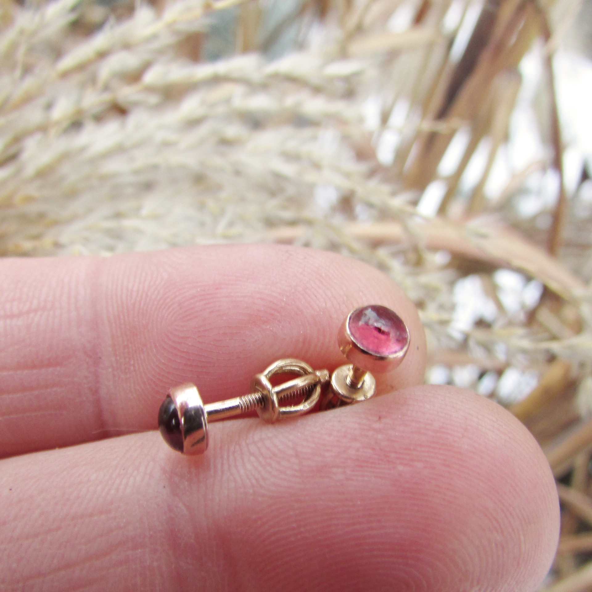 Náušničky z růžového zlata ryzosti 585/1000, zajištěny šroubovacím balonkem. Balonek při dotažení velmi dobře drží, jde o spolehlivou pojistku náušnice.
