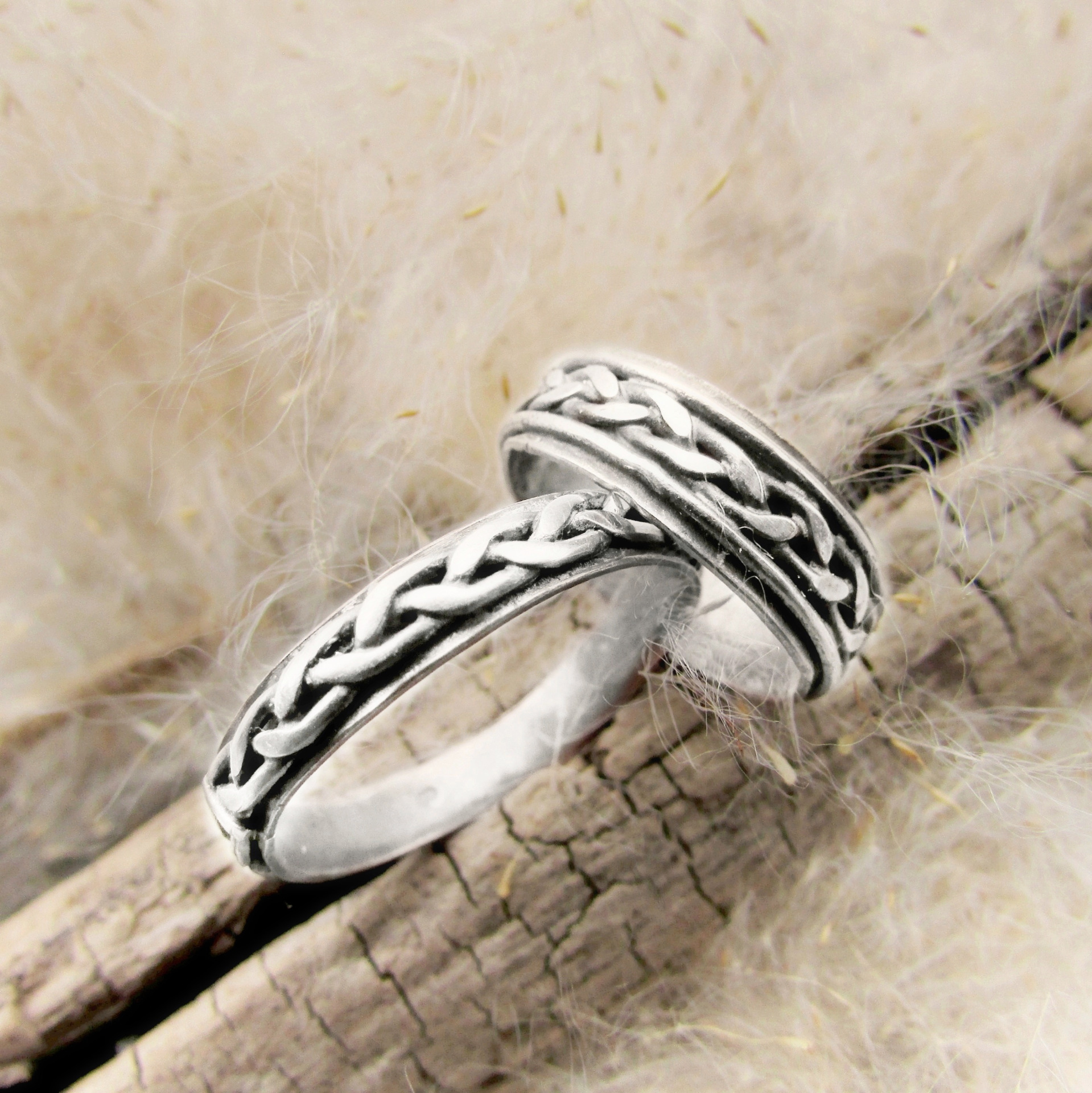 PROVEDENÍ: Jedná se o ruční autorskou tvorbu, šperky jsou neopakovanými originály. Pri výrobě nepoužívám komponenty, vše je klasická ruční výroba zlatnickou technikou. Ornament je ručně spletený cop, částečně kovaný, prostorový a příjemný na omak. Vše vepsané pak ještě zdůrazňuje tmavá patina. Zaručuji PRECIZNÍ ZLATNICKÉ ZPRACOVÁNÍ A PŘESNOST. Silnější robustní kroužky, které něco vydrží.