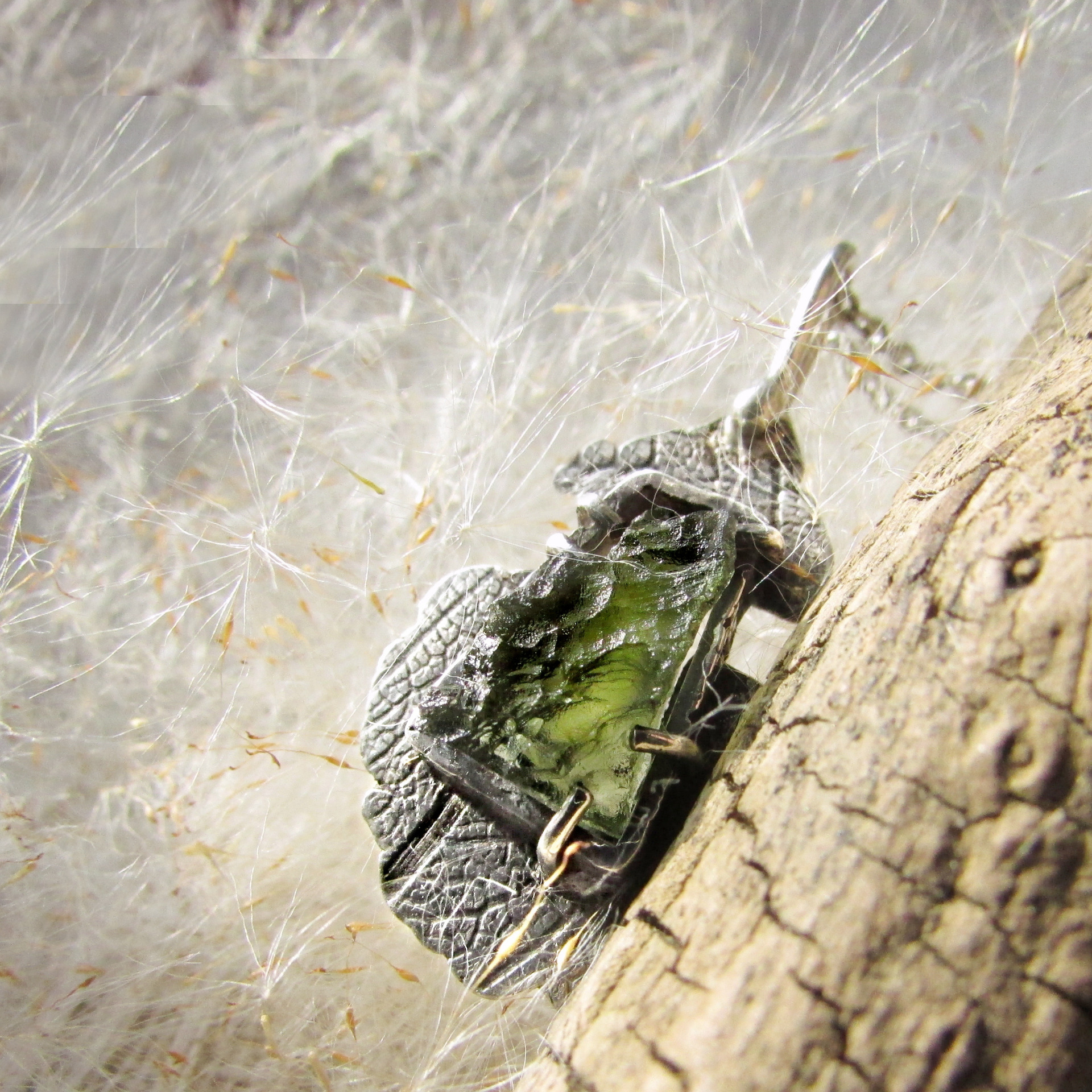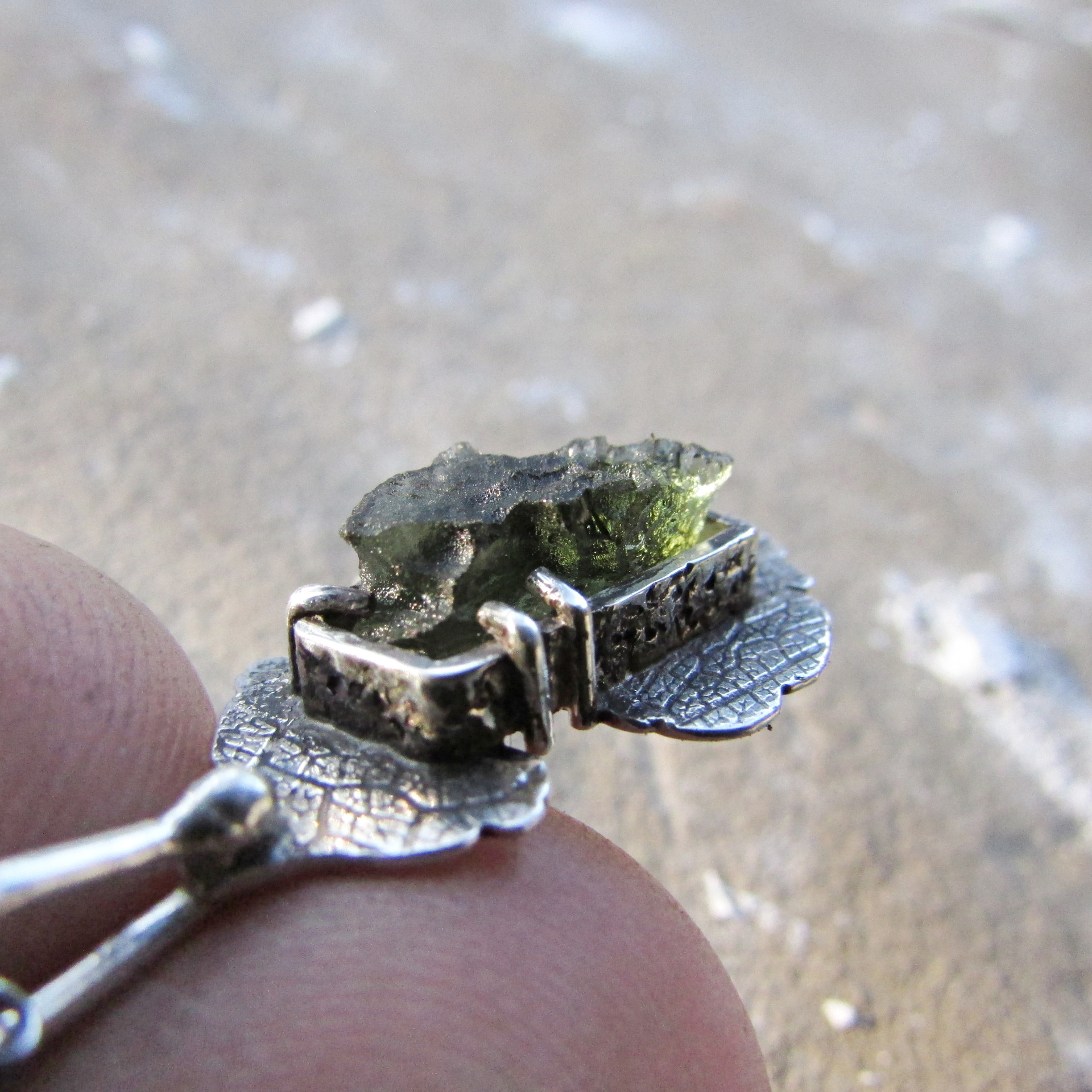 tak prostupu světla zespodu kamene. Spodní strukturované stříbro má