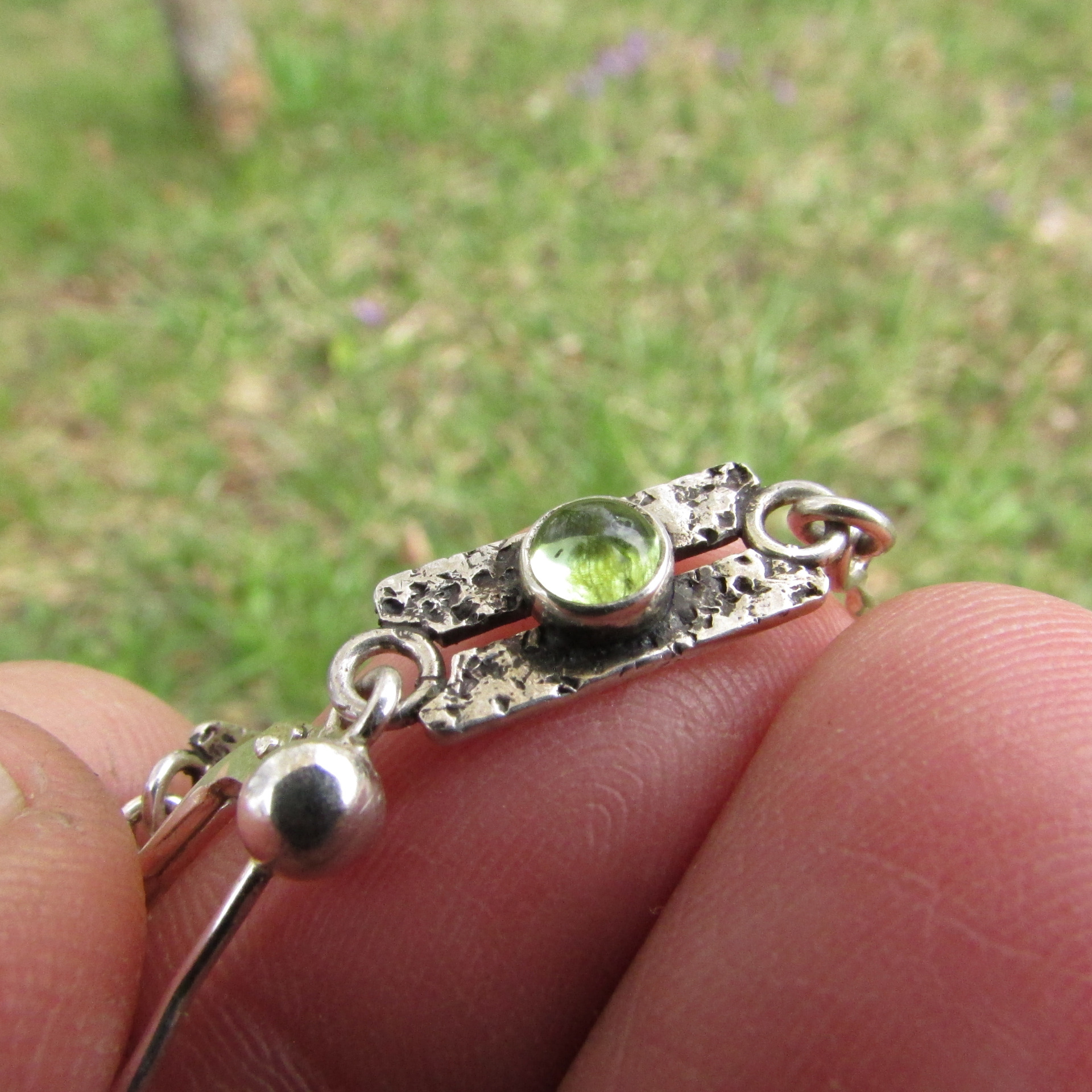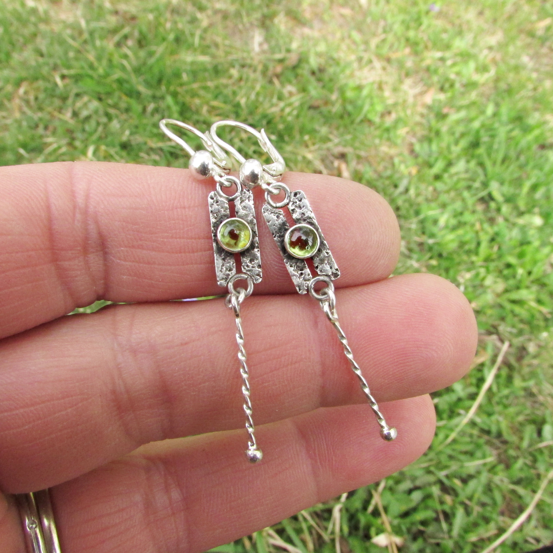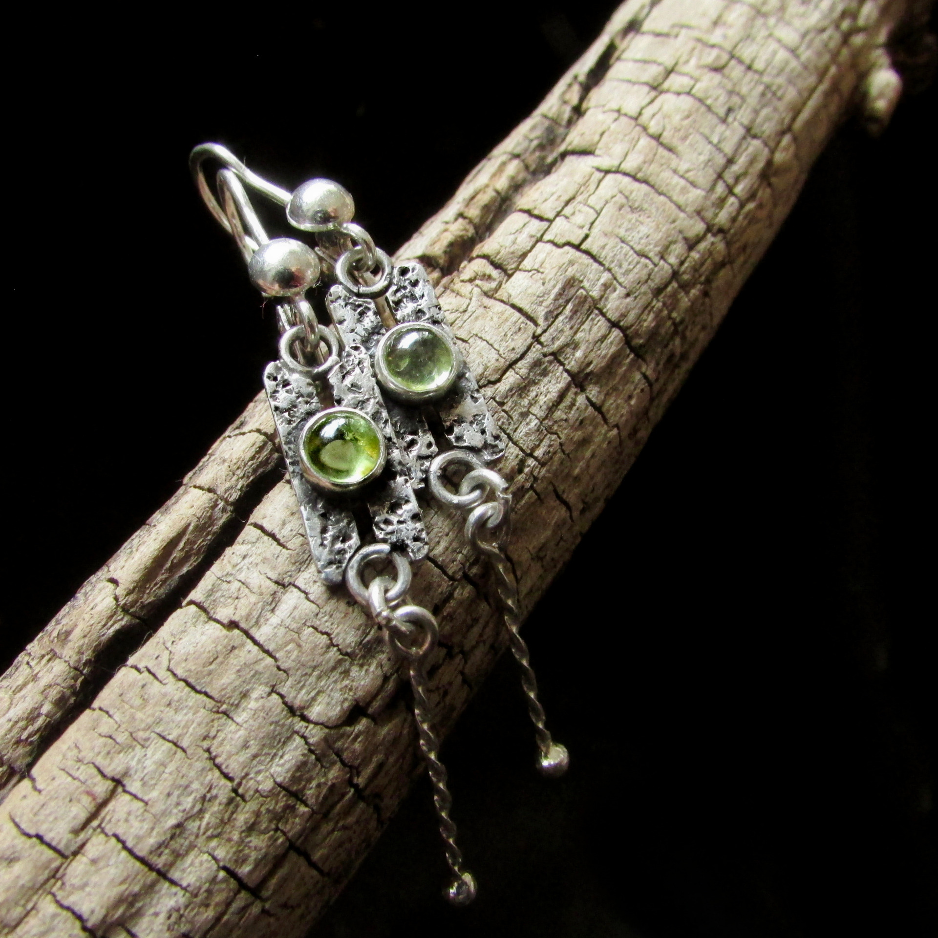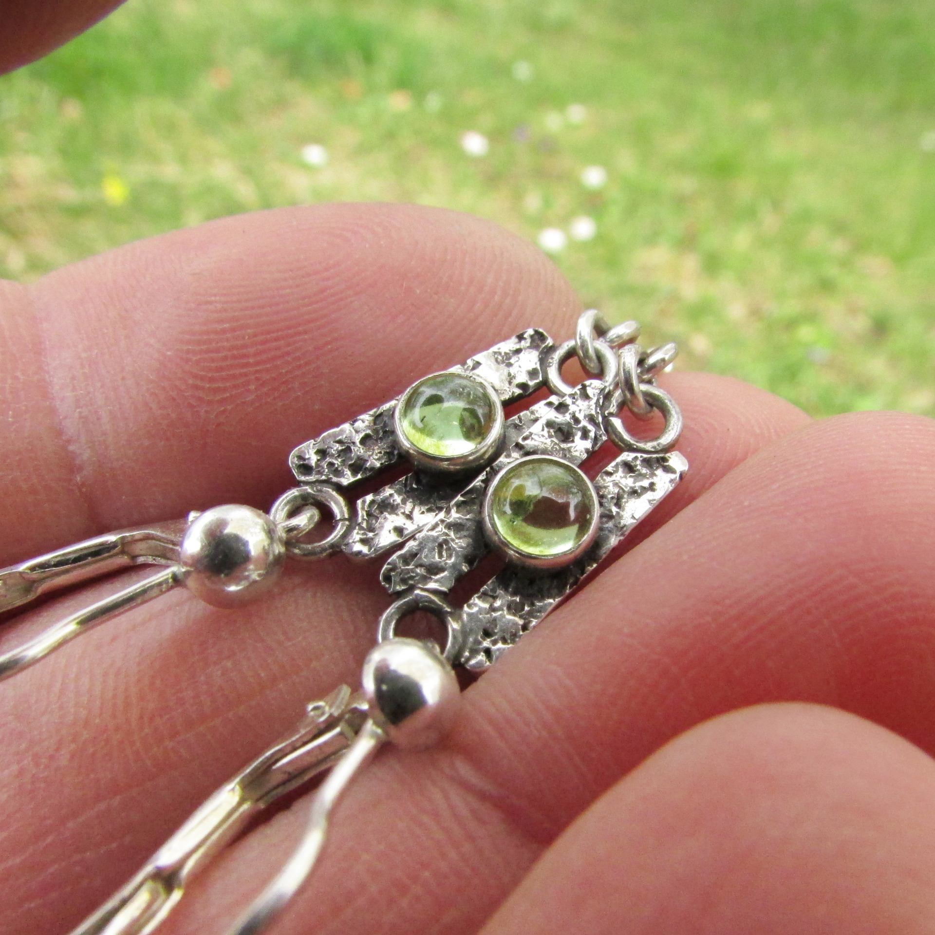 Stříbrné náušnice ryzosti 925/1000 s přírodními olivíny, patentní zapínání..
