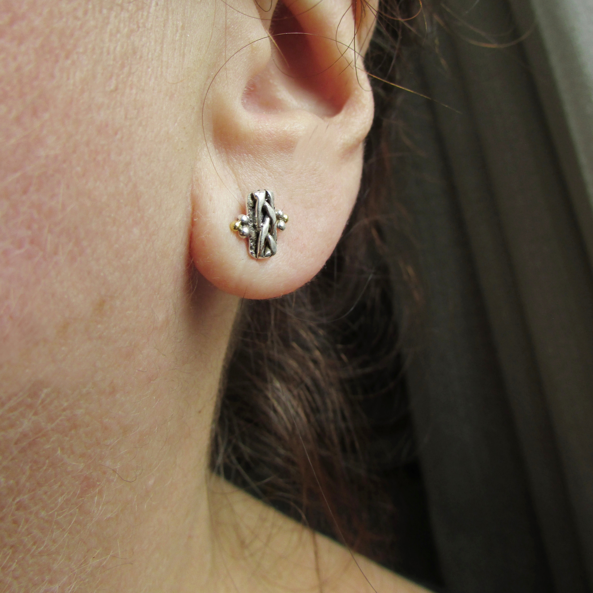 PROVEDENÍ: Šperk je ručně vyroben klasickou zlatnickou technikou. Podklad ze strukturovaného a patinovaného stříbra dává nádherně vyniknout motivu copu a kontrastuje se žlutým zlatem.
