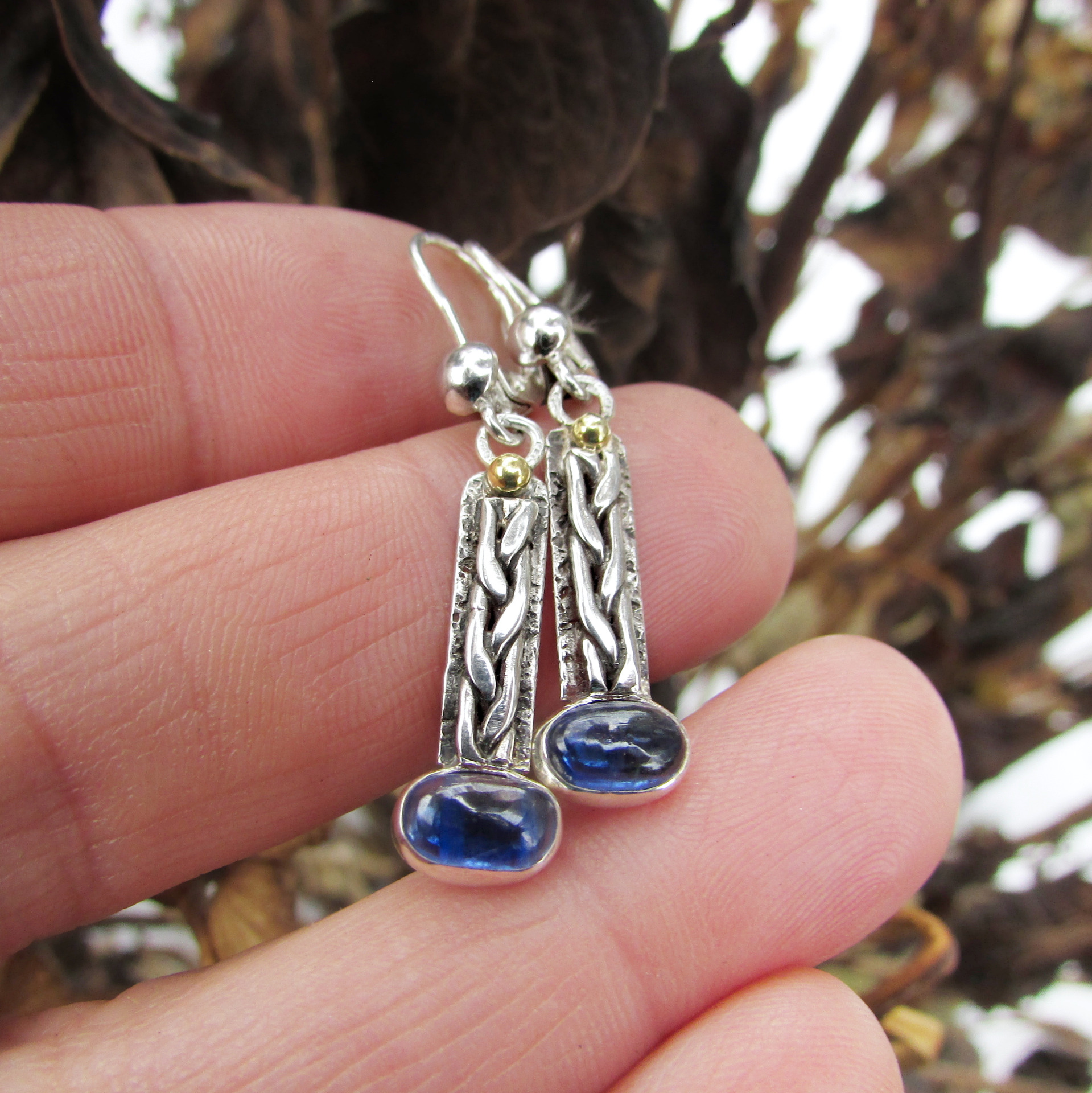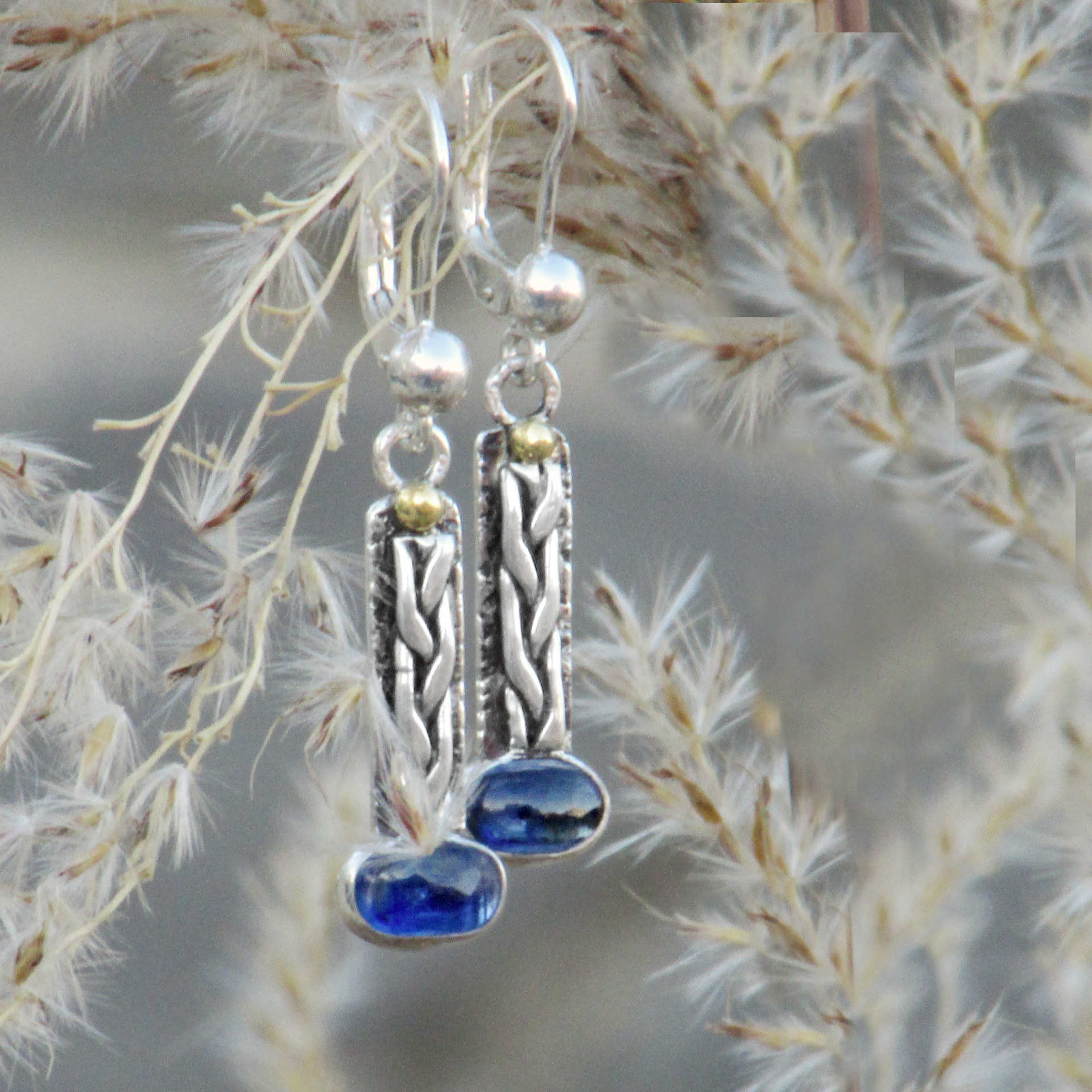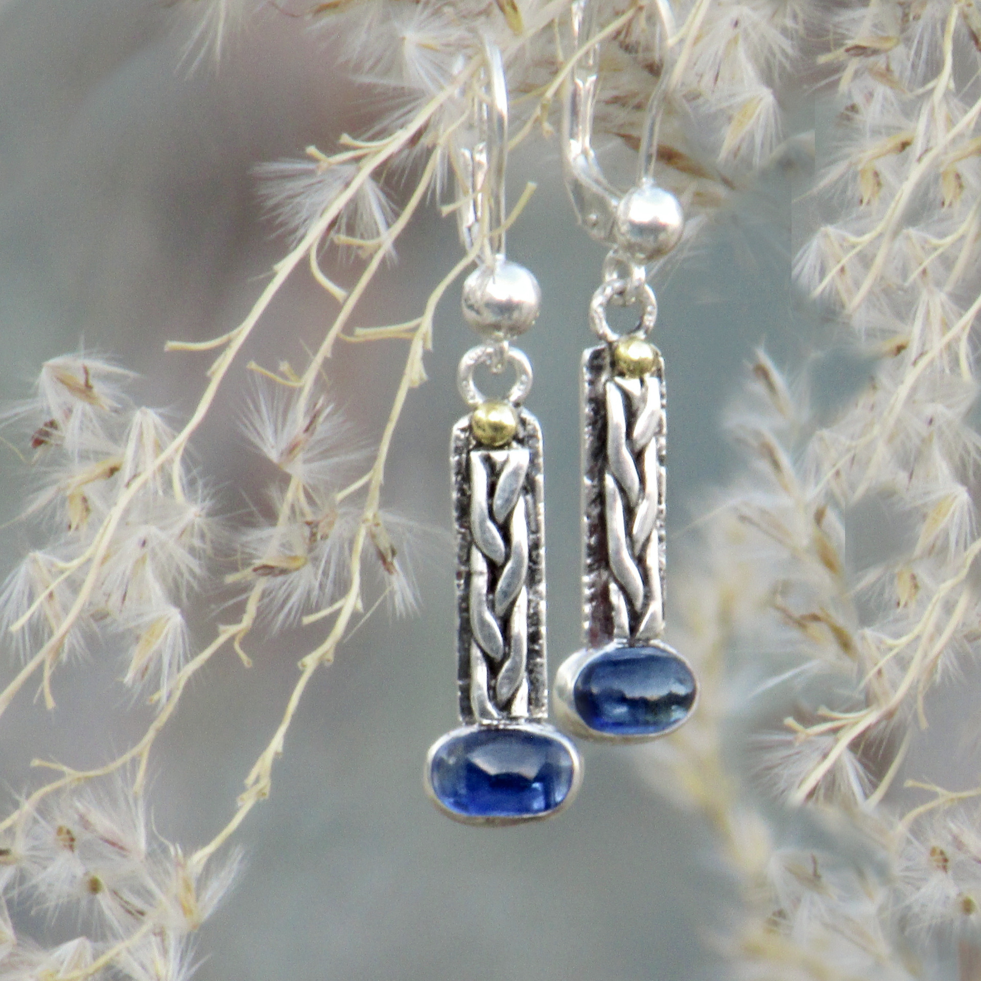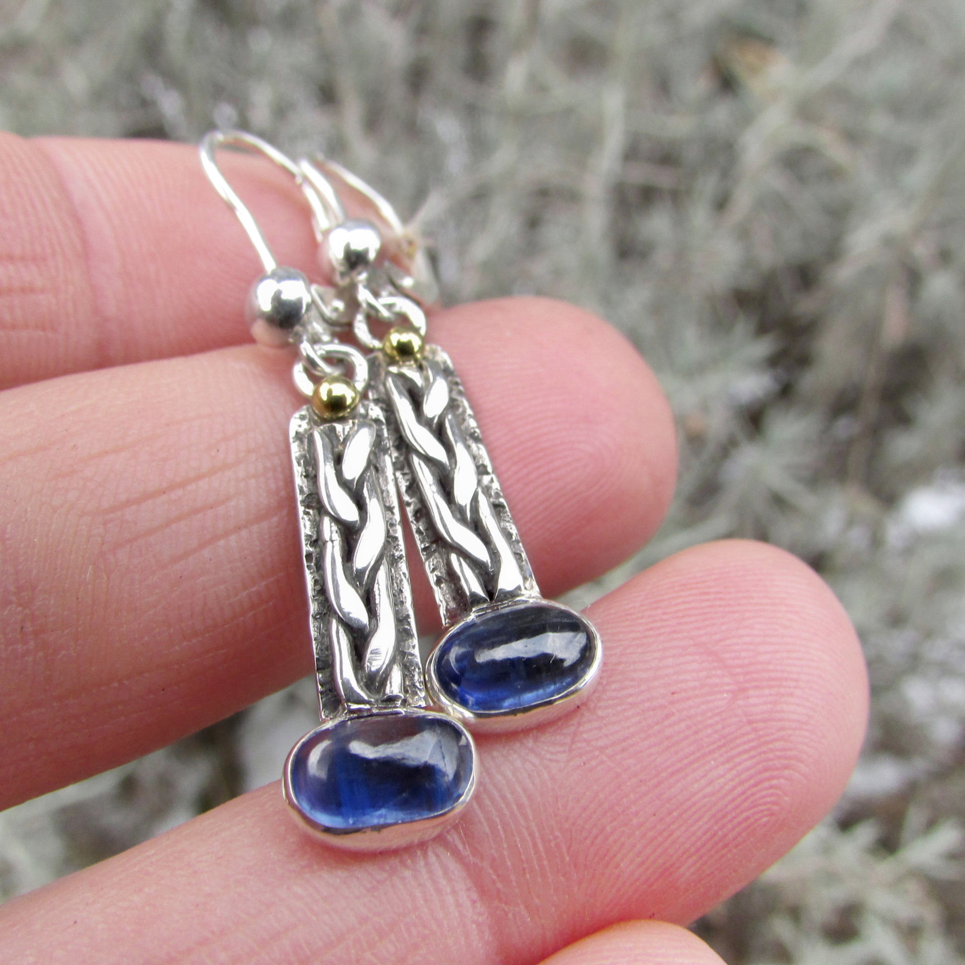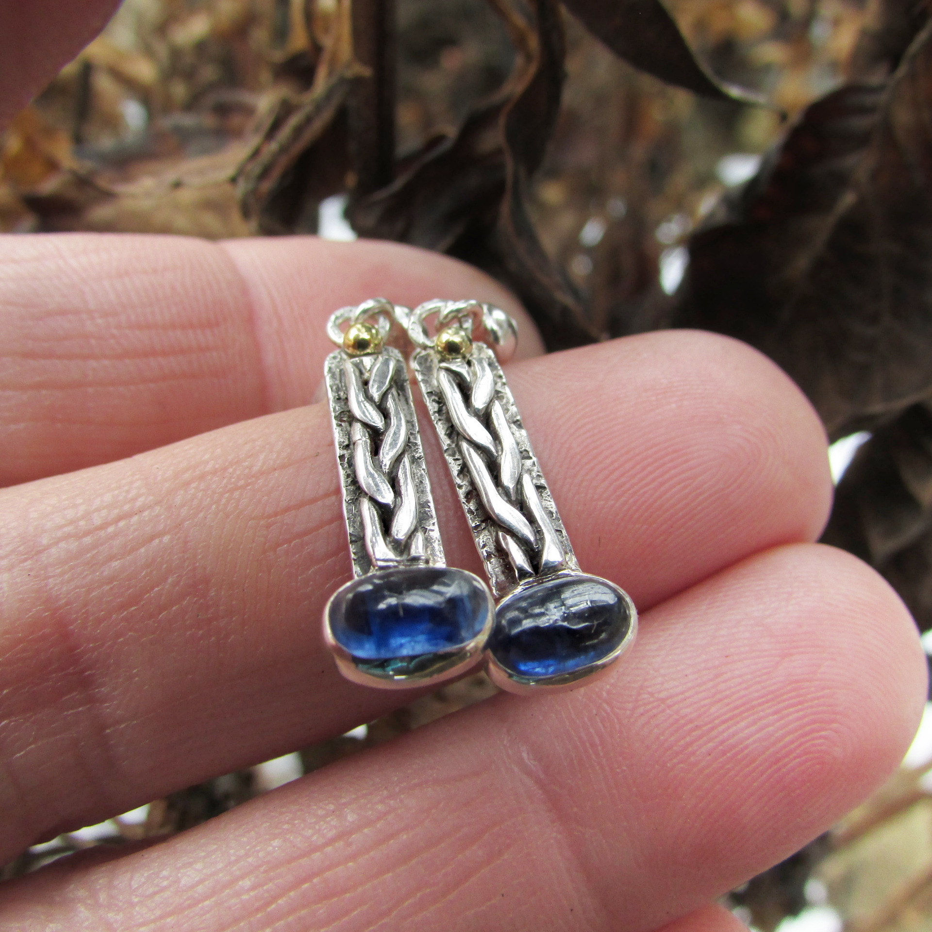 PROVEDENÍ: Šperk je ručně vyroben klasickou zlatnickou technikou. Strukturované patinované stříbro dává nádherně vyniknout motivu copu a kontrastuje se žlutým zlatem a modými výběrovými kyanity. Zaručuji