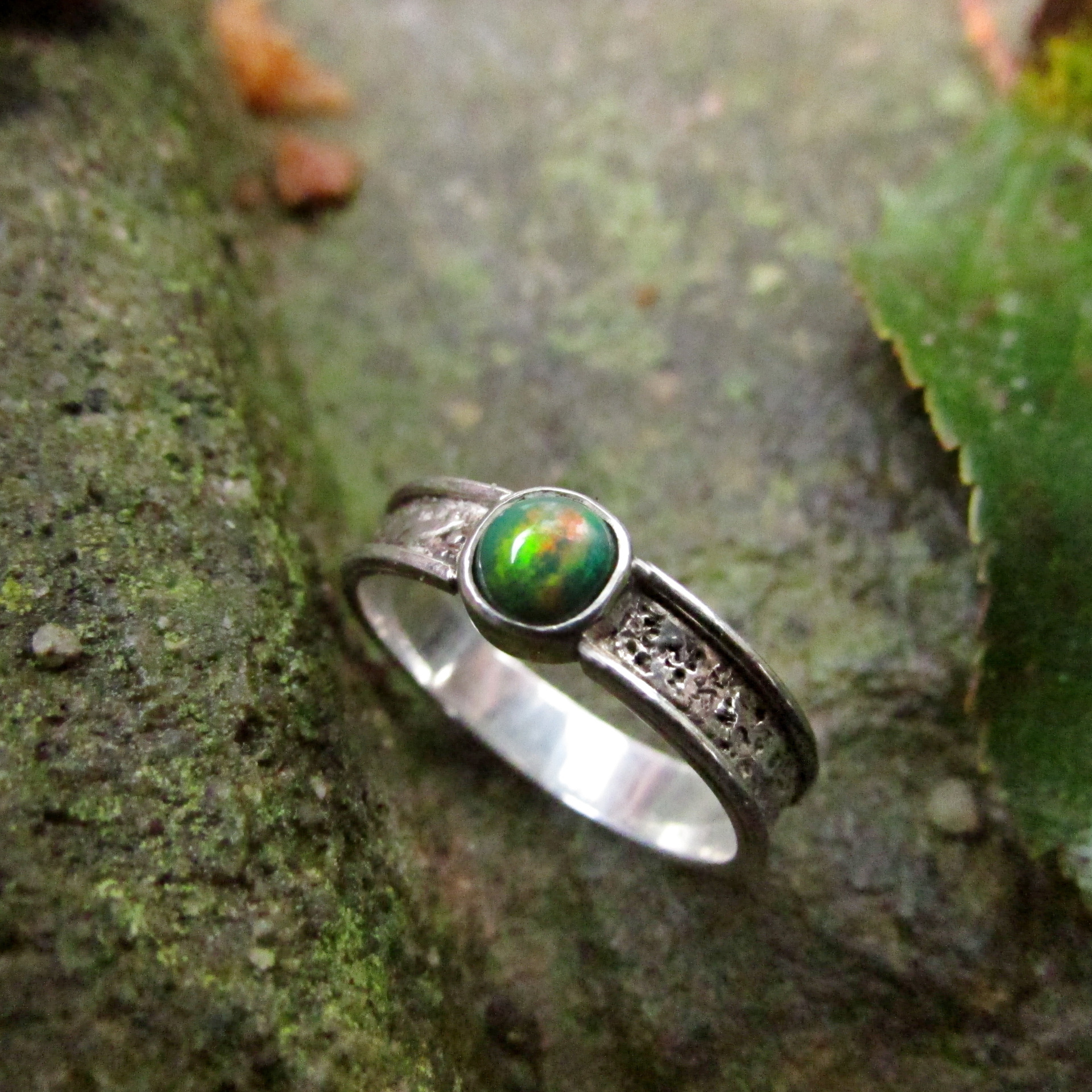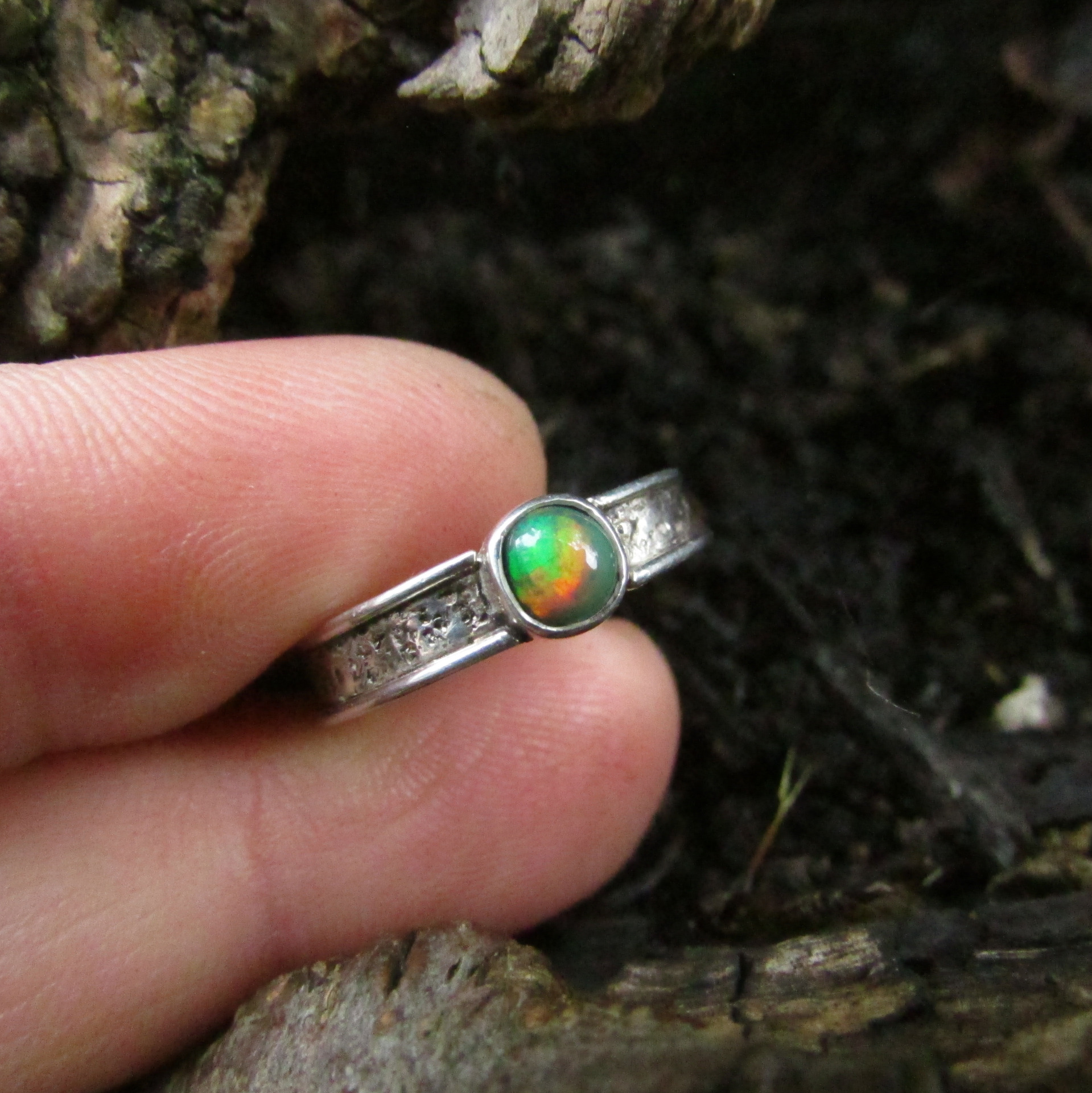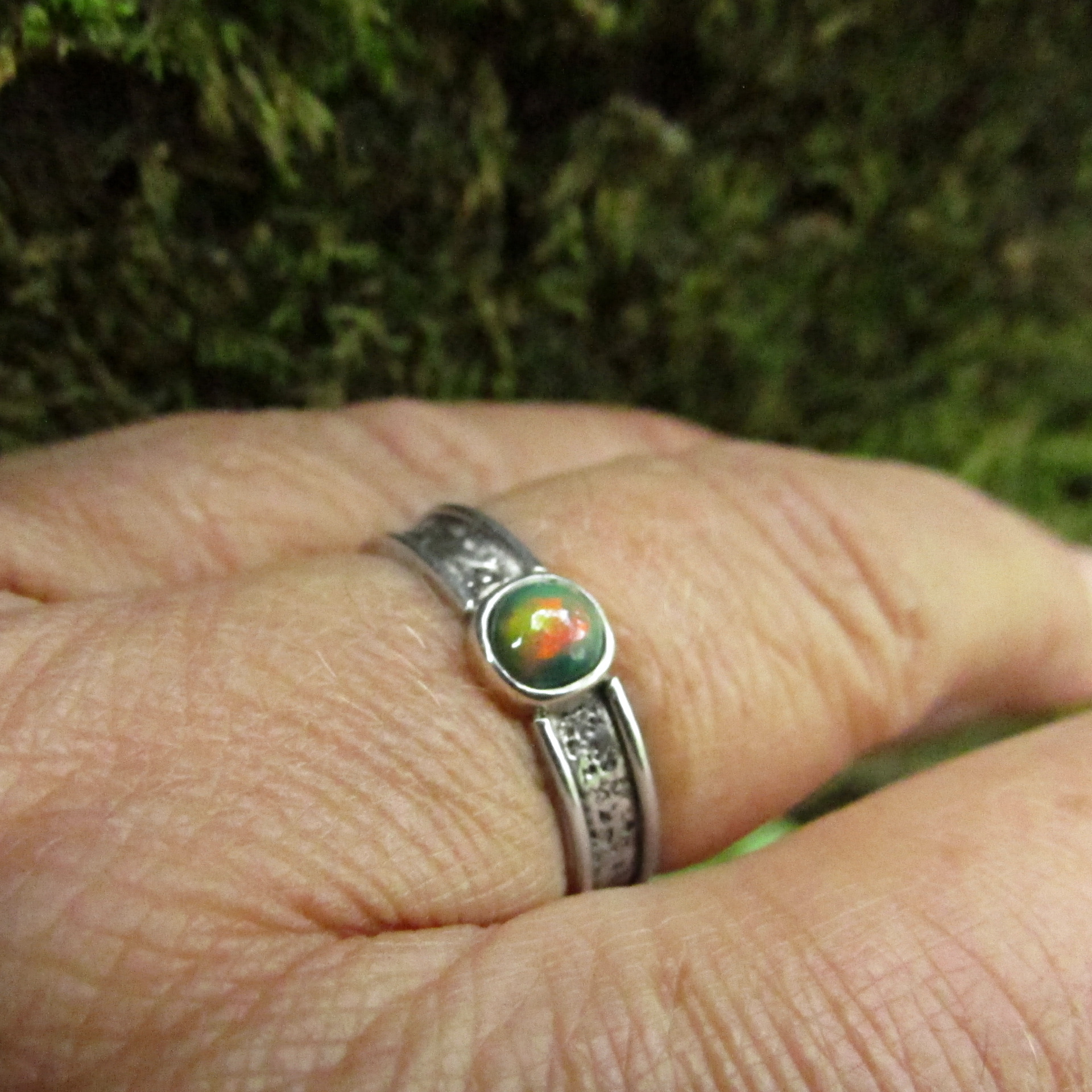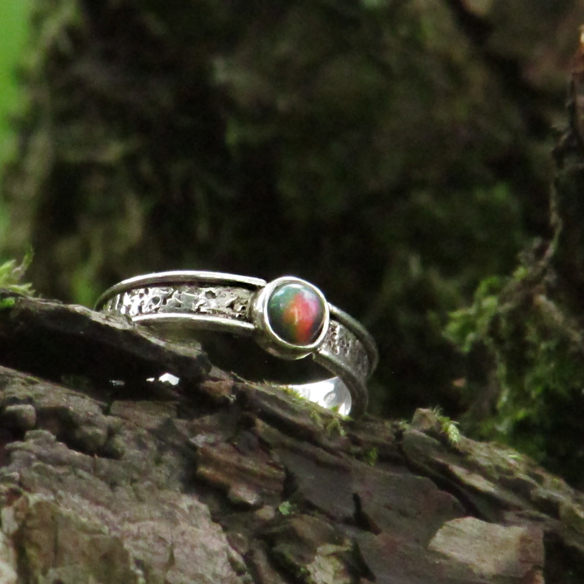 Autorský ručně vyrobený šperk - stříbrný prstýnek ryzosti 925/1000. Dominuje mu překrásný drahý opál.