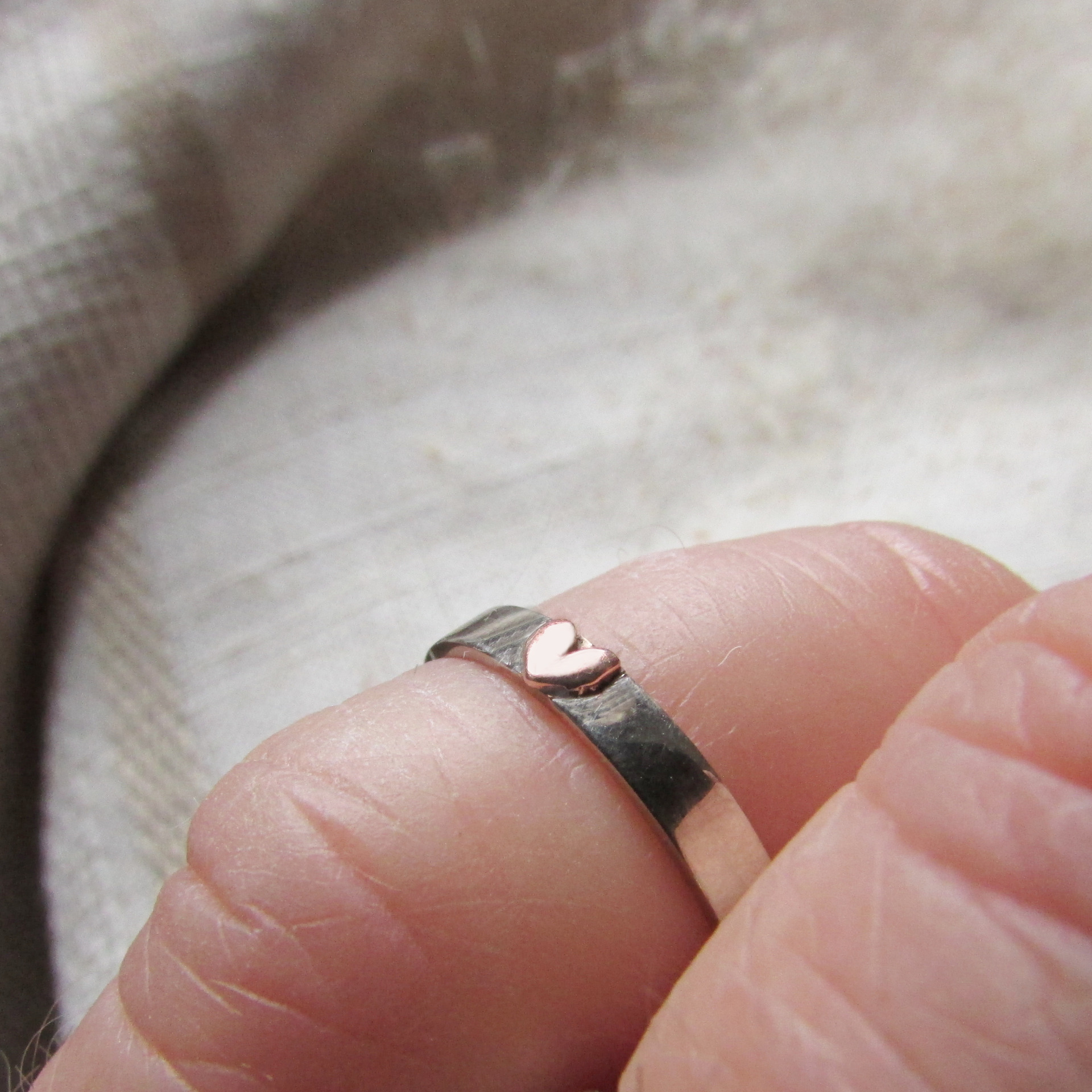 Prsten z bílého zlata s růžovým zlatým srdíčkem....